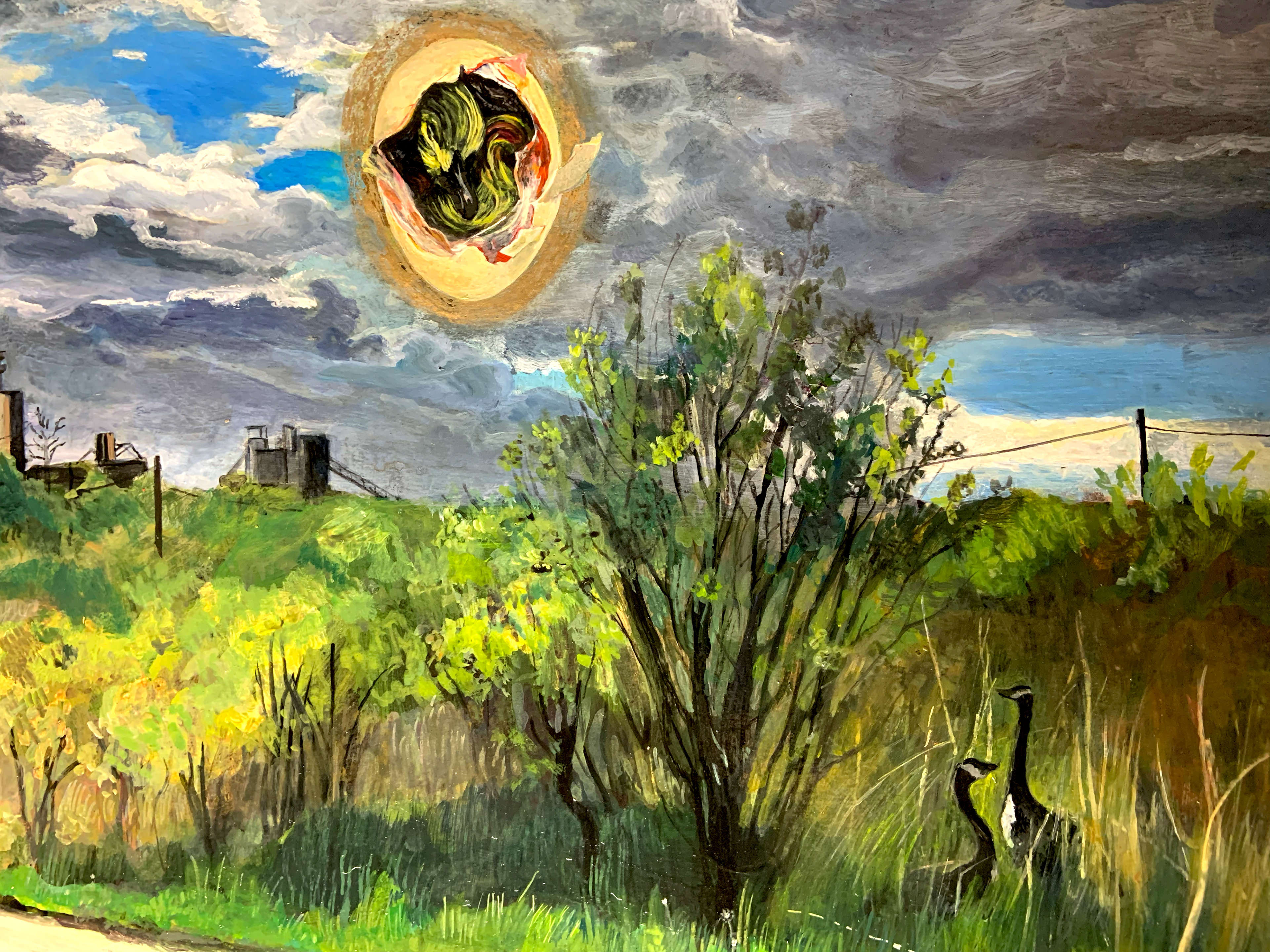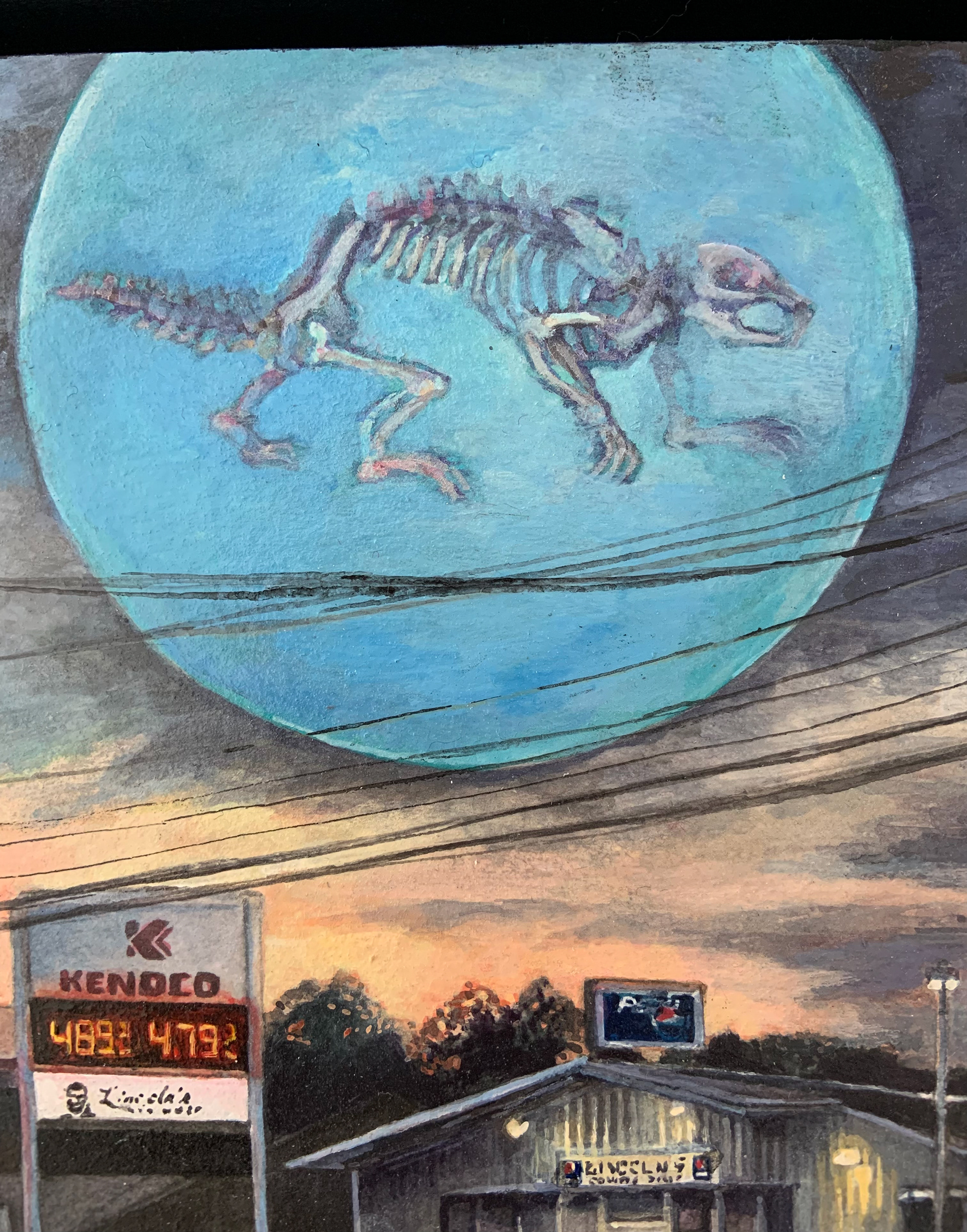 Dragon Cement (Nativity I), 2023, gouache and acrylic on illustration board mounted on wood